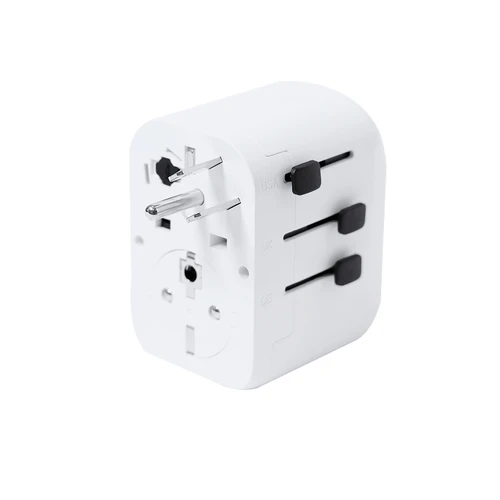 Completo adaptador de enchufes, de diseño compacto y portable. Con salidas USB y dos Tipo C, especialmente indicado para viajes y con adaptadores multi región para USA, Europa, Asia, Reino Unido y Australia. Indicador LED de encendido.