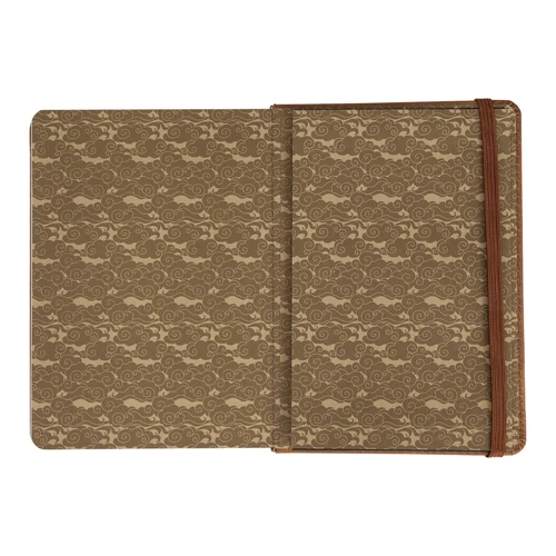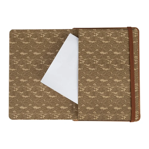 Agenda de Viaje tamaño B6 modelo "TRAVEL JOURNAL", con tapas duras forradas en PU eco-cuero, interior 90 finas hojas amarillas lineadas, con datos relevantes para tus viajes. Contiene elástico para cierre. Y banda separador de hojas color marrón.