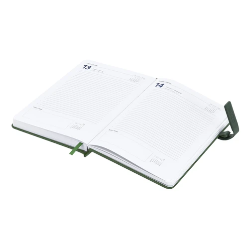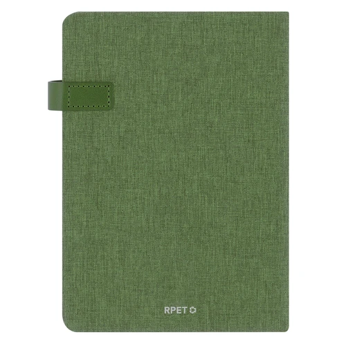 Agenda A5 fabricada en poliéster reciclado RPET. Con cubiertas rígidas, con efecto bitono, cierre magnético de PU y marcapáginas a tono. Diseño página día. Incluye zona de anotaciones. En 2 idiomas: castellano e inglés. Presentada en cada individual. El material RPET se elabora a partir de plástico reciclado, para así fomentar la reutilización de residuos plásticos y ayudar a la sostenibilidad del planeta.