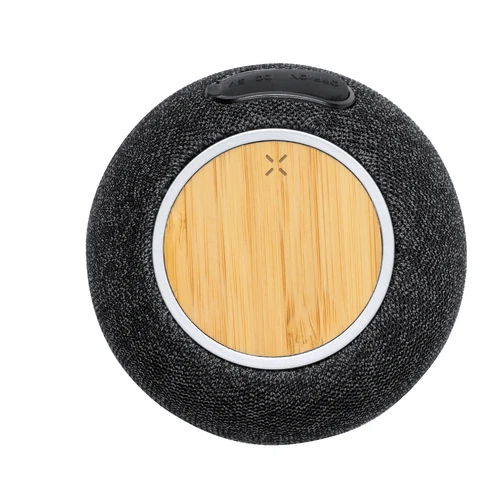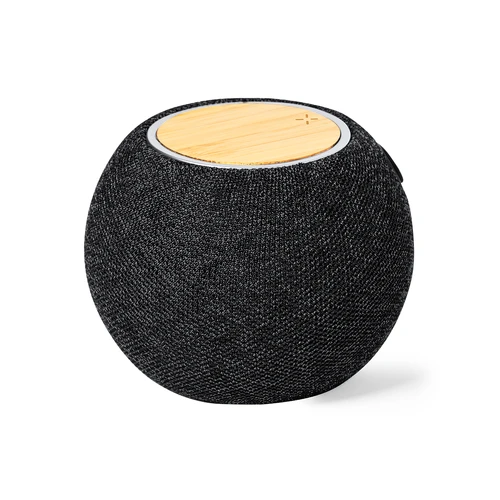 Altavoz multifunción con conexión Bluetooth. Con carga inalámbrica de 15W para dispositivos con tecnología Qi. Carcasa fabricada en bambú y poliéster RPET, 5W de potencia, batería de 1200 mAh y conexión Bluetooth 5.0. Incluye cable cargador Tipo C. Con distintivo RPET y presentado en caja individual de diseño kraft. Disponible manual de instrucciones en español e inglés.El material RPET se elabora a partir de plástico reciclado, para así fomentar la reutilización de residuos plásticos y ayudar a la sostenibilidad del planeta.