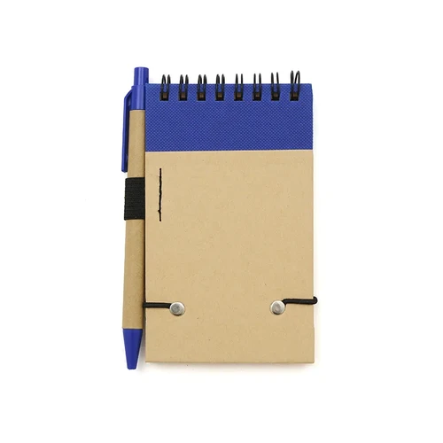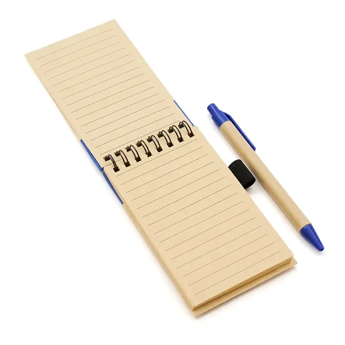 Anotador vertical con hojas rayadas y bolígrafo de tinta azul. Confeccionado con papel de 70 gramos, incluye 50 hojas rayadas.