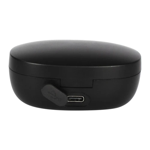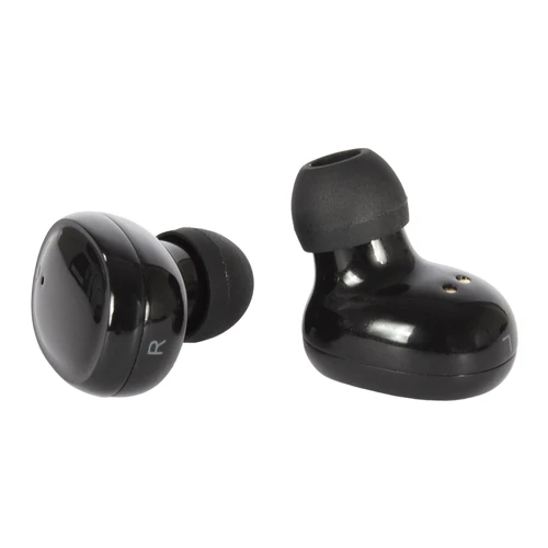 Audífonos Auriculares inalámbricos negros de Alta Fidelidad modelo "Echo". Cada auricular cuenta con un botón touch que permite subir y bajar el volumen, contestar y finalizar llamadas, reproducir y pausar música. Tienen tecnología Bluetooth 5.0, una duración de batería de aproximadamente 4 horas y un estuche de carga de 200 mAh, el cual se carga a través de un cable USB - Type C. Tiempo de Carga: 2 horas. Diámetro del Mando: 8MM, Sensibilidad: 93+-3dB, Impedancia: 32 Omega, Frecuencia: 20Hz-20KHz, Voltage de la Batería: 3.7V +- 0.5V, Distancia: 10m. Máxima Potencia: 5mW. Presentación en caja de regalo impresa a todo color.