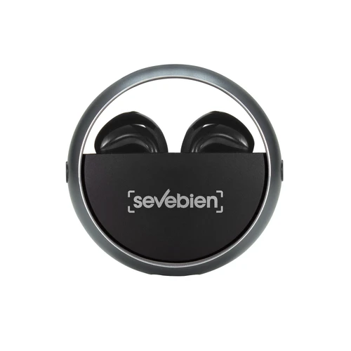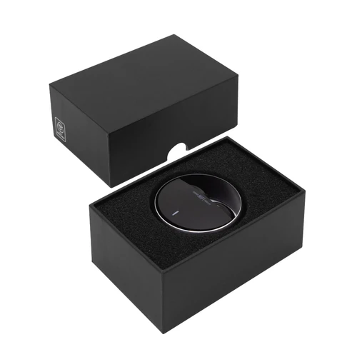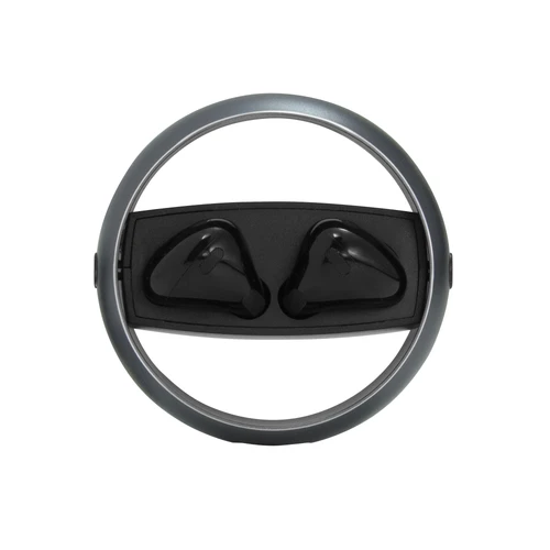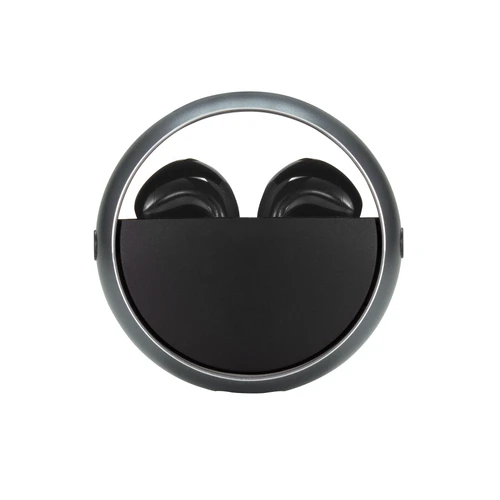 Ø 5 cm. x 1,8 cm. Plástico ABS. Aluminio. Auriculares TWS color negro. Sonido de calidad HI-FI. Versión Bluetooth V5.3. Rango de alcance 10 metros (en áerea abierta). Tiempo de reproducción 4 horas. Capacidad de la bateria: 25 mAh para los auriculares, 230 mAh para el estuche de carga. Los auriculares se colocan en el estuche de carga con marco de aluminio giratorio. Accesorios: cable de carga USB tipo C en color negro. Incluye manual de usuario. Presentación en caja de regalo color negro mate.