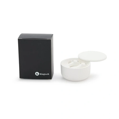 Auriculares inalámbricos con estuche de carga y micrófono incorporado. Posee tecnología bluetooth 5.0. Capacidad del auricular es de 30mAh y su capacidad de carga es de 300mAh. Cuenta con cobertura bluetooth en una distancia de 10 metros y su duración en funcionamiento es de 2 horas seguidas. El tiempo de carga es de 1 hora. Medidas: 3.5 x 6cm. Kingtech.