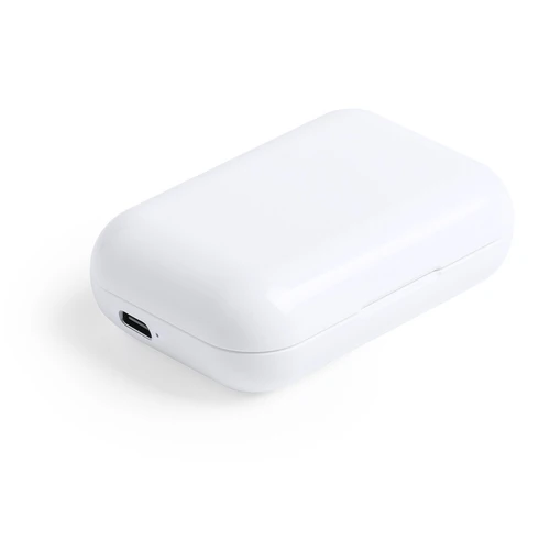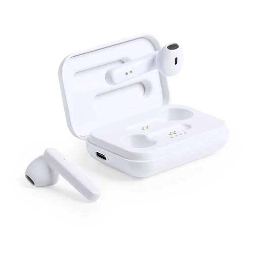 Auriculares intraurales en elegante acabado blanco y conexión Bluetooth 5.0. De diseño ergonómico, incluyen botón de control táctil integrado en el auricular, con base de carga a juego. Función manos libres y recargables, con cable micro USB incluido. Presentados en estuche individual de lujo con tapa de bisagra y en atractiva caja de diseño.