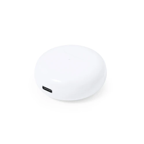 Auriculares intraurales con conexión Bluetooth 5.3 y función manos libres. De diseño ergonómico, incluyen botón de control táctil integrado en el auricular, con base de carga a juego. Batería integrada de 200 mAh y presentados en caja individual de diseño kraft. Manual de instrucciones en español e inglés.