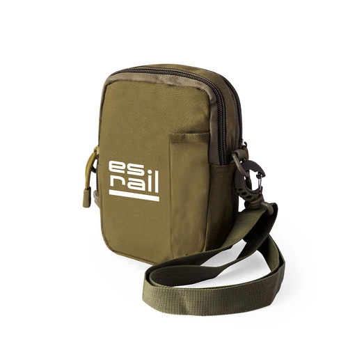 Bandolera en resistente poliéster 800D y tonos marrón arena. Con 2 bolsillos centrales, cierre de cremallera, y parte frontal de rápido acceso. Con cinta bandolera ajustable y presentada individualmente en bolsa reciclada.