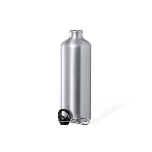 Bidón de 1 l de capacidad, fabricado en aluminio de acabado brillo. Tapón a rosca en negro, con anilla y mosquetón de transporte. Libre de BPA y presentado en caja individual de diseño kraft.Disponible manual de instrucciones en español e inglés.