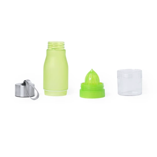 Original bidón de 700ml de capacidad en material tritán resistente al calor y libre de BPA. Incluye compartimento en base con exprimidor de cítricos para dar sabor al agua. Con dosificador, tapón a rosca y cinta de transporte. Disponible en variada gama de colores y presentado en caja individual.