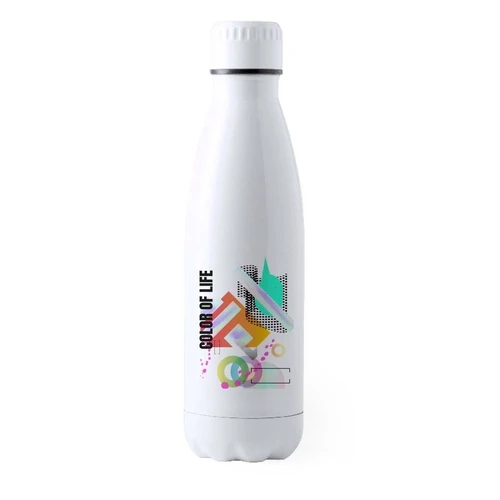 Bidón para sublimación de 700ml de capacidad con cuerpo acabado en acero inox en color blanco brillo. Con tapón de seguridad. Presentado en atractiva caja de diseño.