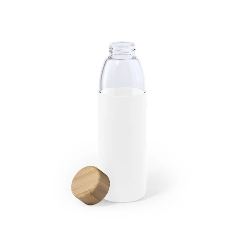 Bidón de línea nature de 540ml de capacidad. Fabricado con cuerpo de cristal y tapón a rosca de bambú. Incluye funda de silicona y viene presentado en caja individual de atractivo diseño.