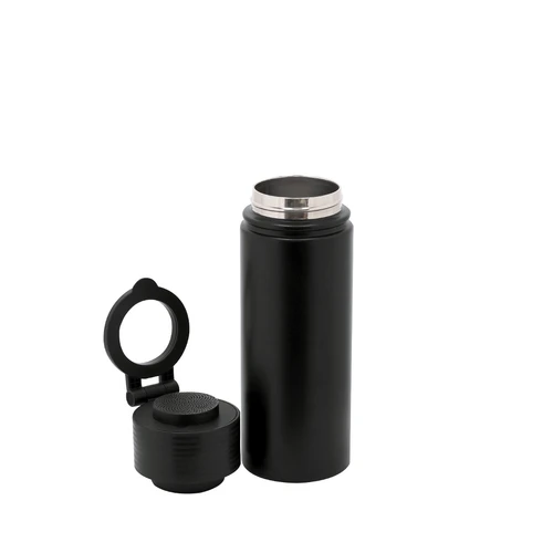 Bidón térmico con Altavoz Bluetooth 5.4 de 3W integrado. Con 500 ml de capacidad y fabricado en acero inox de doble pared, asegurando una durabilidad máxima y un excelente mantenimiento de la temperatura de las bebidas, ya sean frías o calientes. Tapadera con sistema de cierre de rosca y libre de BPA, e incluye sujeción orientable para smartphone con tecnología Magsafe. El altavoz Bluetooth de 600 mAh integrado en el tapón es fácilmente extraíble gracias a su sistema de rosca.