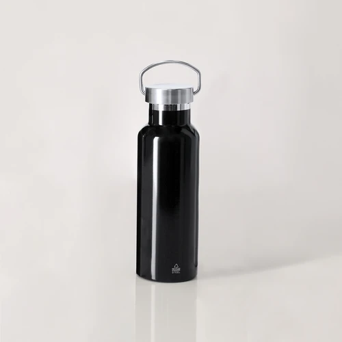 Bidón térmico fabricado en Acero Inoxidable Reciclado de doble pared y 500 ml de capacidad. Acabado en vivos colores con efecto metalizado. Tapón a rosca equipado con asa de trasporte. Incluye distintivo Acero Inoxidable Reciclado. El acero es uno de los materiales más demandados y que puede encontrarse casi en todas partes, desde productos de uso diario a grandes construcciones. Con innumerables propiedades, entre las que cabe destacar la durabilidad y su alto grado de reutilización, convirtiéndolo en una alternativa muy valorada en soluciones de sostenibilidad. Debidamente tratado, permite obtener nuevos recursos de infinita utilización.