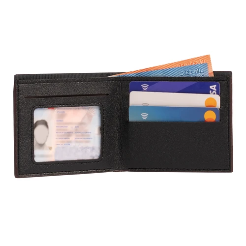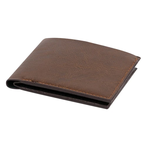 Billetera de eco-cuero color café, modelo "DENVER". Contiene 6 compartimentos interiores. Presentación en bolsa frozen.