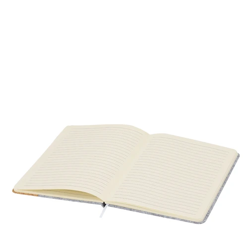 Bloc de notas con tapas rígidas elaboradas en combinación de fieltro RPET y corcho. Incluye 80 hojas a una raya con elástico de sujeción para bolígrafos en portada, banda elástica de cierre y marcapáginas a juego. Incliye distintivo RFELT.Elaborado con elementos vegetales para así fomentar la utilización de materias primas naturales y reducir las emisiones contaminantes.El fieltro RPET es fruto de la combinación del proceso de reciclaje de materiales plásticos junto con la técnica milenaria de fabricación del fieltro, dando como resultado un material de eco-tendencia que, además de ser de origen reciclado, también se convierte en reciclable.