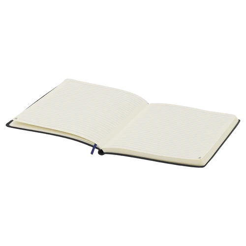 Bloc de notas con tapas blandas fabricadas en PU reciclada. Interior con 80 hojas color crema de disposición a una raya. Incluye marcapáginas a juego. Con distintivo PU Reciclada. La PU reciclada destaca por su resistencia y elasticidad. Este material reciclado y reciclable es una opción sostenible que rescata las fibras desechadas en los procesos de fabricación, minimizando así el desperdicio de material y contribuyendo a su vez a reducir el impacto ambiental, manteniendo a la vez sus propiedades originales.