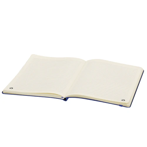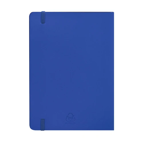 Bloc de notas con tapas flexibles y elaborado en suave PU Reciclado. Con marcapáginas y cinta elástica de cierre a juego. Incluye 80 hojas color crema con disposición a rayas. Con distintivo de PU Reciclado.La PU Reciclado destaca por su resistencia y elasticidad. Este material reciclado y reciclable es una opción sostenible que rescata las fibras desechadas en los procesos de fabricación, minimizando así el desperdicio de material y contribuyendo a su vez a reducir el impacto ambiental, manteniendo a la vez sus propiedades originales.