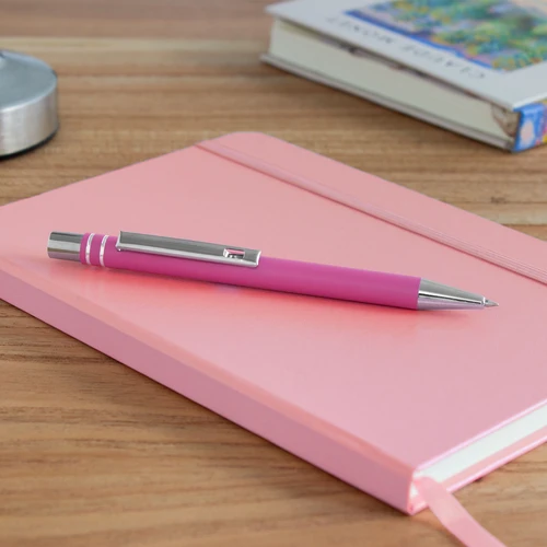 Elegancia en cada trazoBolígrafo retráctil. Tinta gel. Cuerpo metálico en diferentes colores acabado mate. Clip metálico, puntera y pulsador metálicos. Medidas: 14 cm.