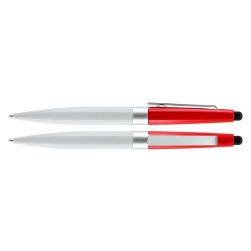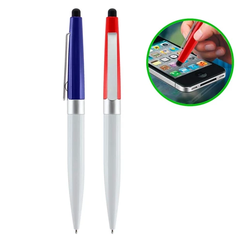 Bolígrafo modelo "Biarritz", mitad metálico/mitad plástico, incluye puntero Touch-Screen. Escritura negra.