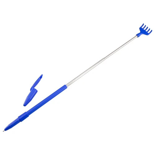 Bolígrafo plástico de color con tapa, con Manito Rascadora expansible (tipo antena). Escritura azul.