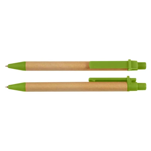 Bolígrafo Ecológico modelo COMPO de Cartón Reciclado con terminales de plástico de color PET biodegradable.