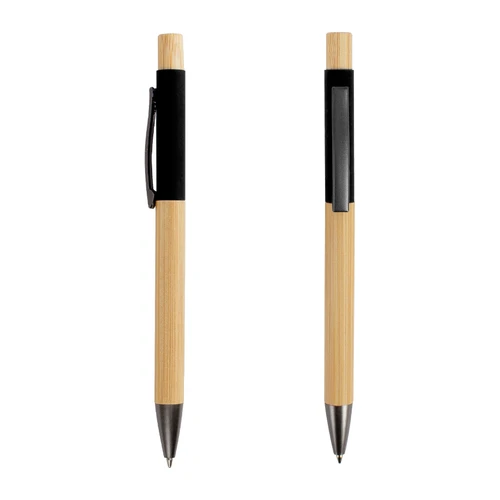 Bolígrafo ecológico de madera de Bamboo, modelo "EVA". Con terminales metálicos y sección superior en goma EVA de color. Tinta azul.