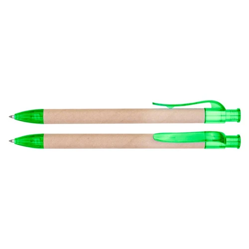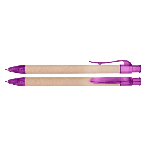 Bolígrafo Ecológico "Planet" de cartón reciclado, con terminales de color traslúcido. Escritura azul.