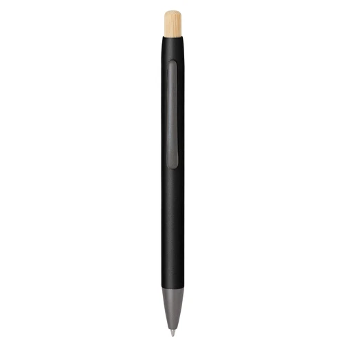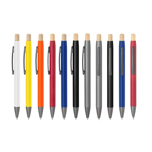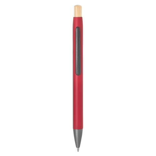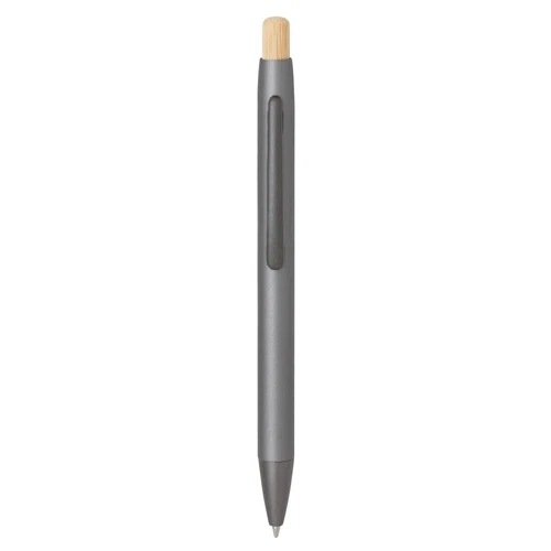 Elegancia en tus manos.Bolígrafo retráctil. Cuerpo metálico en diferentes colores acabado mate. Clip metálico, puntera plástica color gris y pulsador de bambú. Medidas: 14 cm.