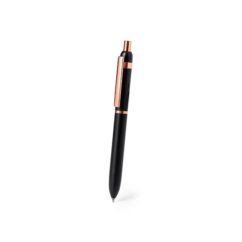 Elegante bolígrafo especialmente diseñado para el marcaje en láser con logotipo en color rosado. De mecanismo pulsador, clip metálico y accesorios en acabado cobre, con detalles plásticos en acabado rosado. Con cartucho jumbo y en tinta azul. Disponible en dos distintivos colores.Presentado en elegante caja de diseño negra.