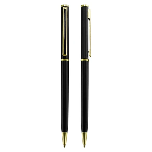 Bolígrafo Metálico negro "Tourist", con terminales dorados. Especial para el rubro Hotelería y Turismo. Escritura negra.