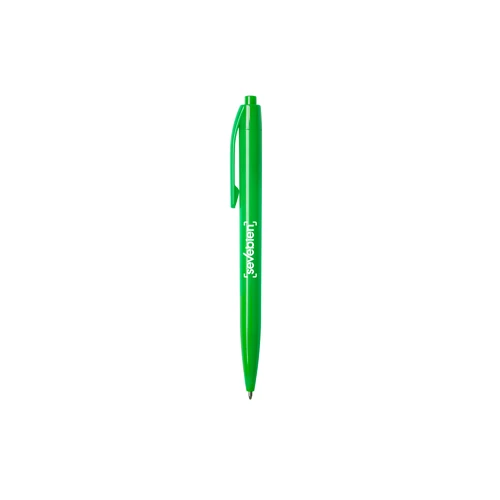 Plástico. Bolígrafo con cuerpo plástico de color con pulsador. Tinta azul.