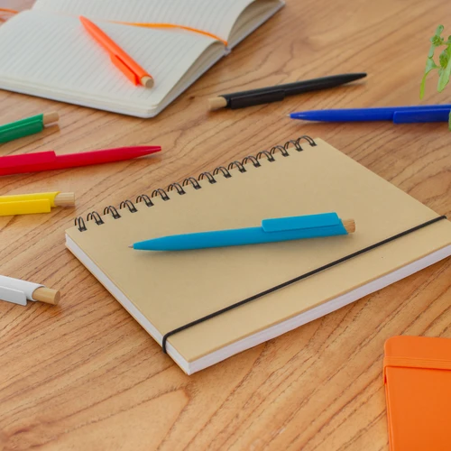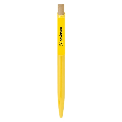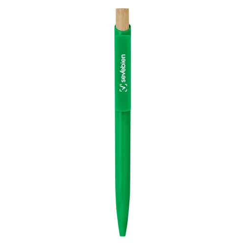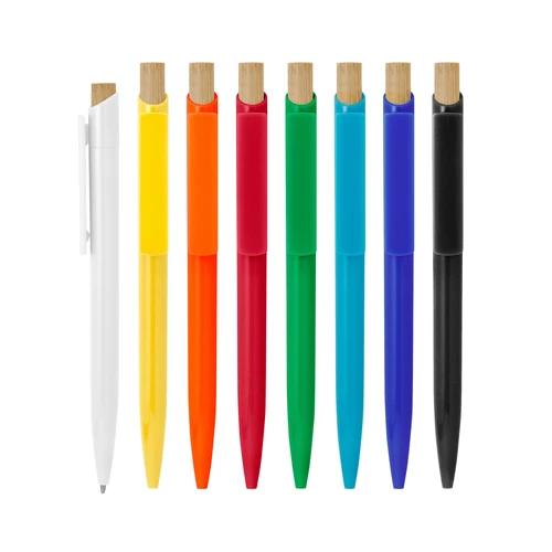 Combina estilo y conciencia ecológica.Bolígrafo retráctil. Cuerpo de diferentes colores. Pulsador de bambú. Clip del mismo color del cuerpo.