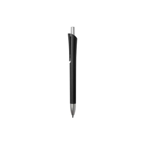 Plástico. Bolígrafo con cuerpo plástico de color, botón pulsador y punta color plata. Tinta azul.