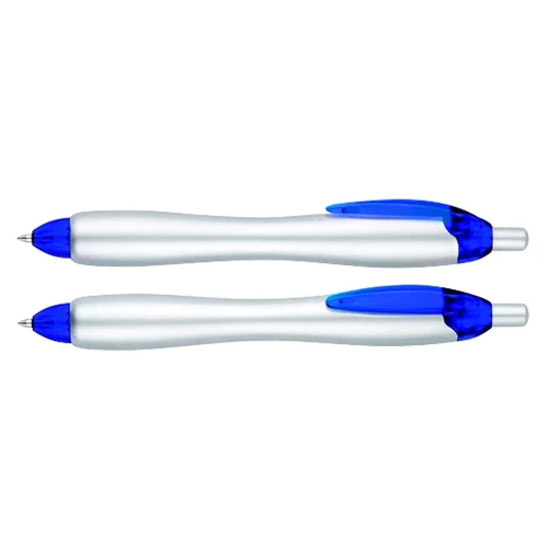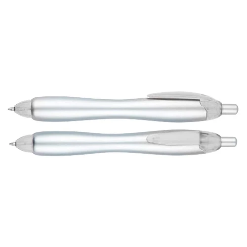 Bolígrafo "Gordito Silver" con cuerpo plateado opaco y terminales de color translúcido. El bolígrafo más vendido de Europa el año 2012. Escritura azul.