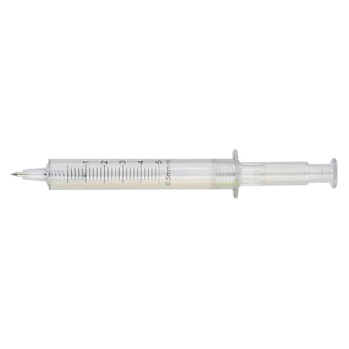 Bolígrafo plástico promocional "Jeringa". Escritura Azul.