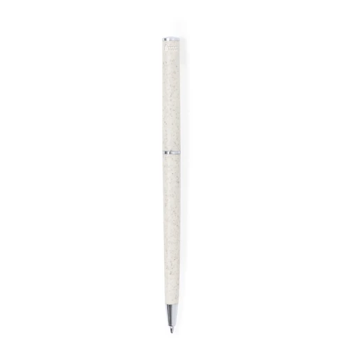 Bolígrafo con cuerpo en caña de trigo. Clip metálico y accesorios cromados. De mecanismo giratorio y de tinta azul. Con logotipo caña de trigo y disponible en color nature.La caña de trigo fomenta la utilización de materias primas naturales, reduciendo así las emisiones contaminantes.