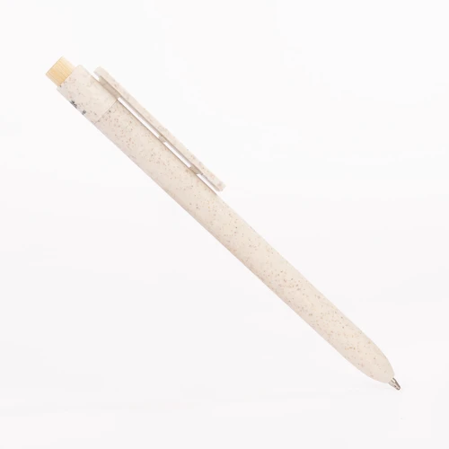 BOMBAY es un bolígrafo que combina lo esencial con lo responsable. Su cuerpo y clip están elaborados con fibra de trigo, un material natural que reduce el uso de plástico convencional, mientras que su pulsador de bambú añade un toque orgánico y moderno. Disponible en una paleta de colores vibrantes –blanco, azul, rojo, verde, naranja y café– y diseñado para personalización, BOMBAY es ideal para campañas que buscan comunicar creatividad y sostenibilidad en un solo trazo