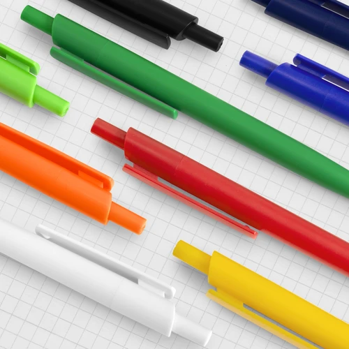 Escribe con estilo y personalidad.Bolígrafo retráctil. Cuerpo de diferentes colores. Acabado mate. Pulsador, clip y puntera del mismo color del cuerpo. Amplia área de impresión.Medidas: 1 x 14 cm.