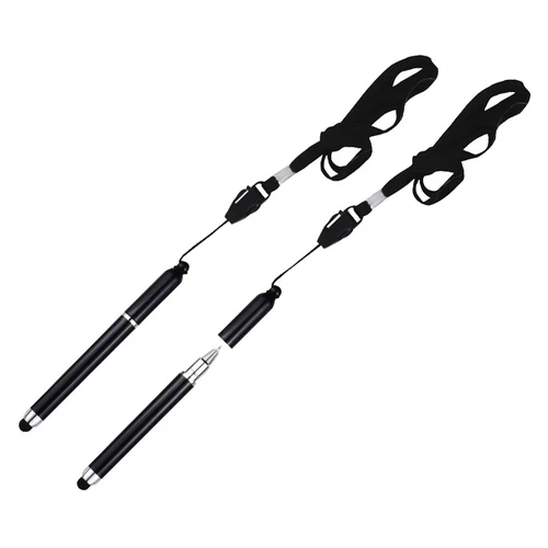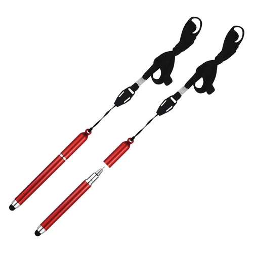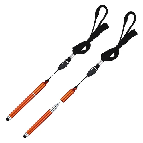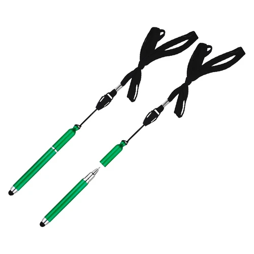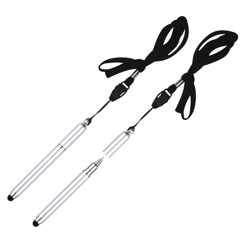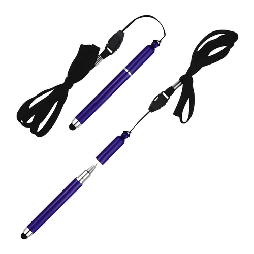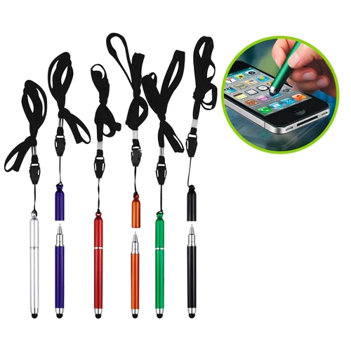 Bolígrafo "Touch-Screen" con goma posterior negra para pantalla táctil. Incluye lanyard colgante negro. Escritura azul.