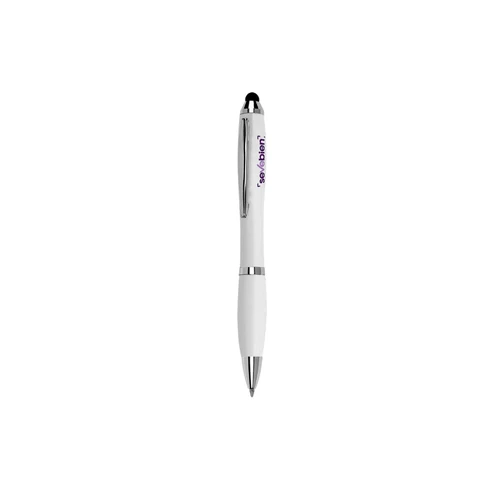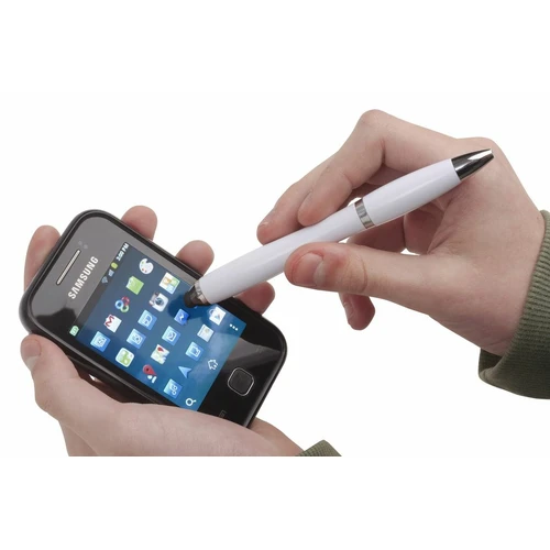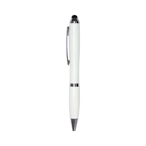 Ø 0,5 x 13,5 cm. Bolígrafo plástico giratorio con detalles metálicos. Clip metálico. Puntero para pantallas táctiles. Tinta azul.