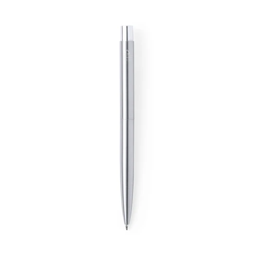 Bolígrafo eco-friendly fabricado en acero inox reciclado. De mecanismo pulsador, con cuerpo en acabado plateado y accesorios en cromado. Clip metálico y distintivo acero inox reciclado en la parte superior del bolígrafo. Cartucho jumbo y tinta azul.Set presentado en estuche individual de diseño kraft con funda a juego.El acero es uno de los materiales más demandados y que puede encontrarse casi en todas partes, desde productos de uso diario a grandes construcciones. Con innumerables propiedades, entre las que cabe destacar la durabilidad y su alto grado de reutilización, convirtiéndolo en una alternativa muy valorada en soluciones de sostenibilidad. Debidamente tratado, permite obtener nuevos recursos de infinita utilización.