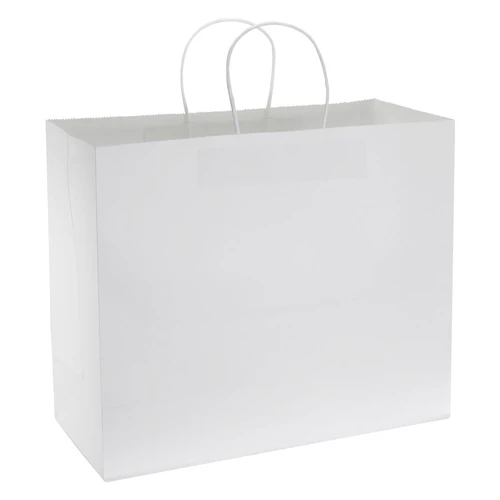 Bolsa de Papel kraft 100% reciclable y reutilizable. Fabricada en resistente material natural de 150g/m2. Contiene asas de papel prensado al tono.