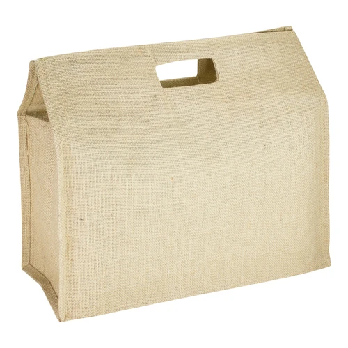 Bolsa de Yute modelo "Biosfera", con recubrimiento laminado interior. Fuelle de yute. Parte superior reforzada con doble tela yute y manillas troqueladas.