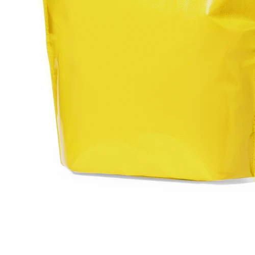 Bolsa nevera en resistente non-woven de acabado laminado brillante y cierre de velcro. Con cómodas asas de transporte en nylon a juego e interior isotermo en acabado de aluminio. Resistencia hasta 7kg de peso.