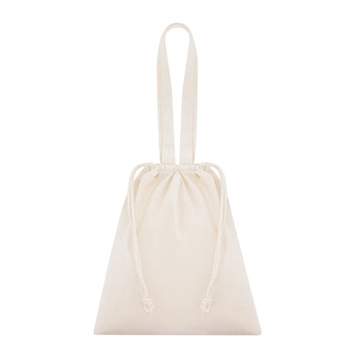 Bolsa con cuerdas ajustables fabricada en algodón 180g/m2 Con asas largas de 70 x 2.5 cm reforzadas. Resistencia máxima de 7 kg.