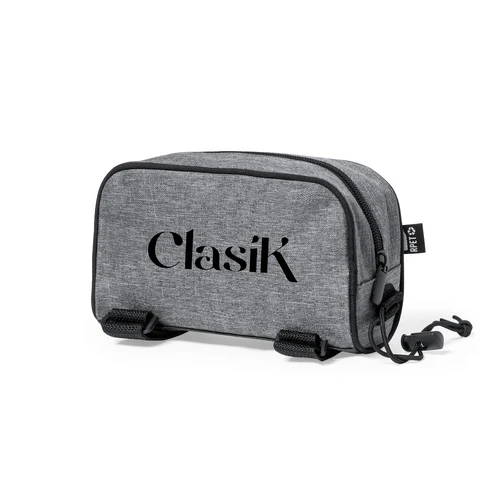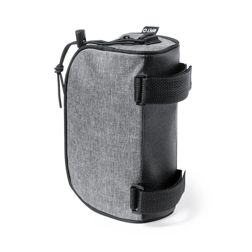 Bolsa para barra de patinete fabricada en resistente 600D RPET. De acabado gris jaspeado.con ribetes de refuerzo y compartimento principal con cierre de cremallera. Incluye doble cinta de ajuste en barra con cierre de velcro y cordón elástico con ajustador. Con distintivo RPET en etiqueta exterior.El material RPET se elabora a partir de plástico reciclado, para así fomentar la reutilización de residuos plásticos y ayudar a la sostenibilidad del planeta.