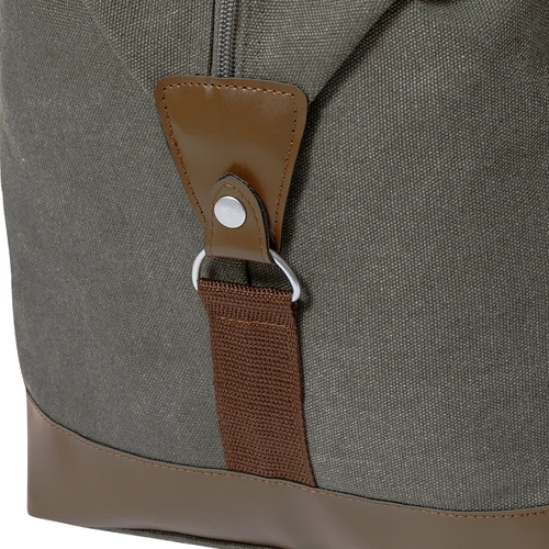 Elegante bolso fabricado en resistente canvas de 475g/m2 gris, con prácticas y resistentes asas en polipiel alrededor del bolso y esquinas reforzadas. Compartimento principal con cierre de cremallera a juego con las asas y cinta para hombro ajustable con mosquetón. Incluye bolsilo exterior de fácil acceso.Presentado en bolsa individual reciclada.