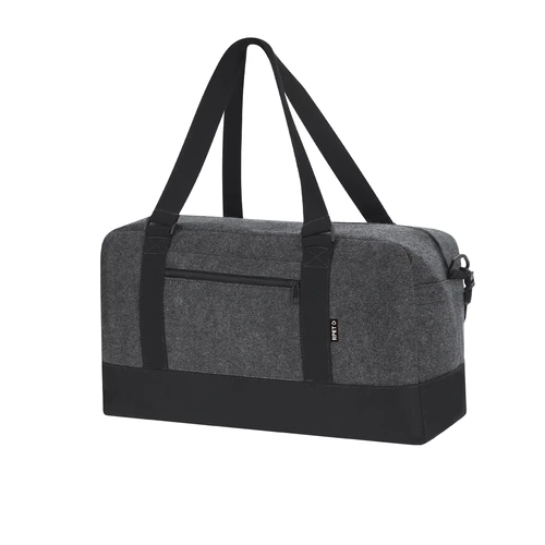 Bolso de fieltro RPET. Con compartimento principal con cierre de cremallera a juego y base en color negro y bolsillo exterior de cremallera. Incluye anchas asas de color negro , cinta bandolera ajustable a juego y distintivo RPET.El fieltro RPET es fruto de la combinación del proceso de reciclaje de materiales plásticos junto con la técnica milenaria de fabricación del fieltro, dando como resultado un material de eco-tendencia que, además de ser de origen reciclado, también se convierte en reciclable.