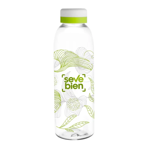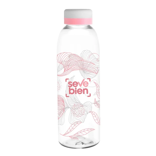 Materiales: PET Cristalino. ATENCIÓN Botella y tapa se arman en nuestra bodega. Para pedidos hasta 500 unidades, se deben considerar 24 horas adicionales a los plazos habituales. Por cantidades mayores a 500 unidades, por favor consultar a su ejecutiva para acordar los plazos de entrega. Los pedidos procesados en nuestro taller de impresión ya incluirán el armado. / No utilizar con bebidas gaseosas ni líquidos calientes. / El manejo de este producto es delicado. / No exponer al sol y temperaturas altas por tiempo prolongado.