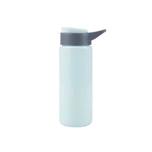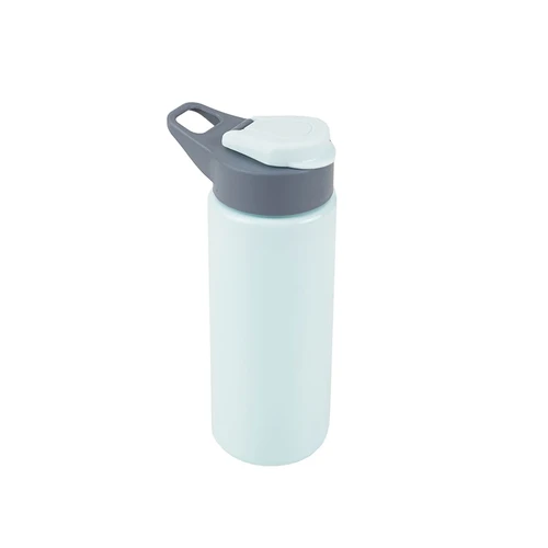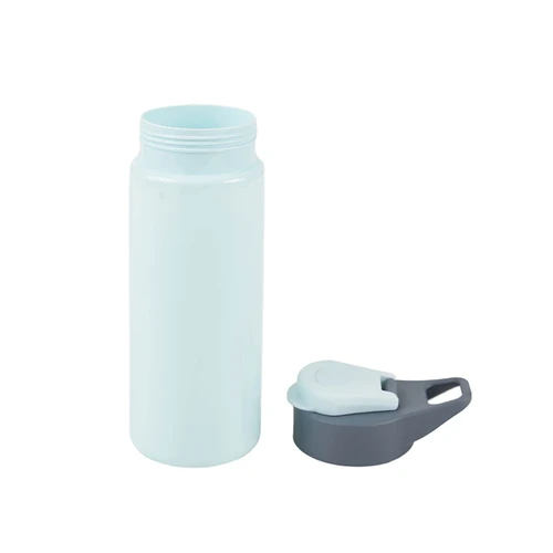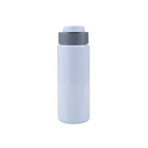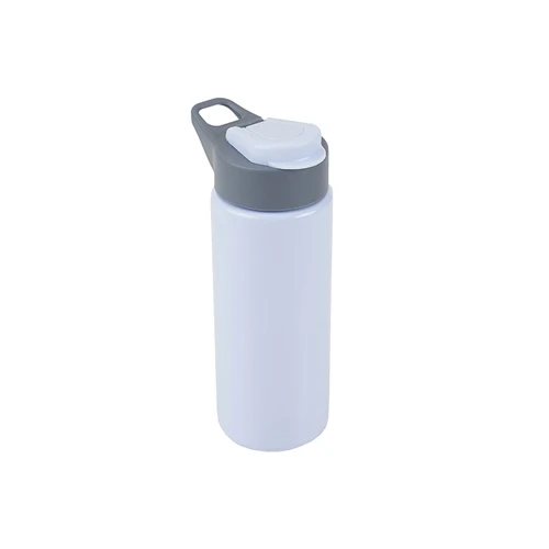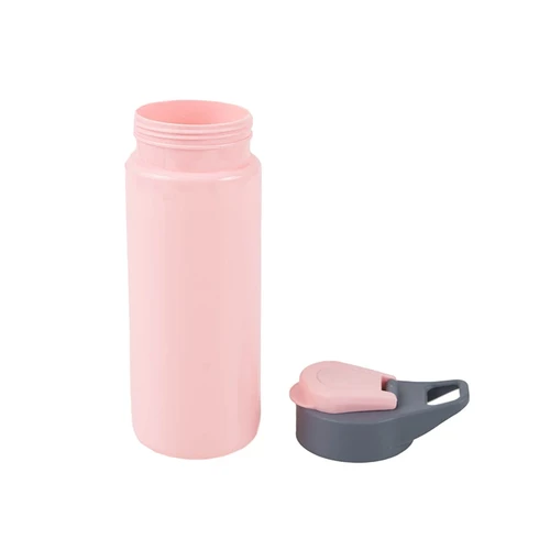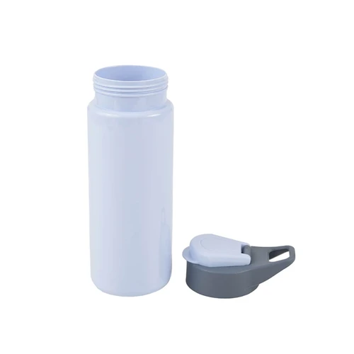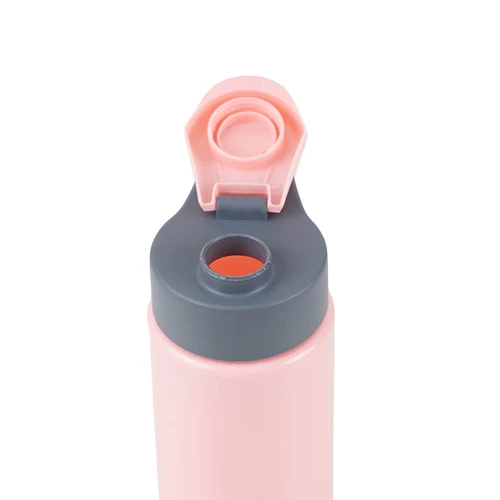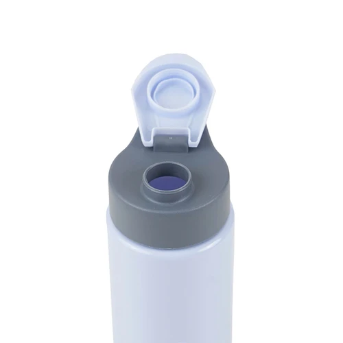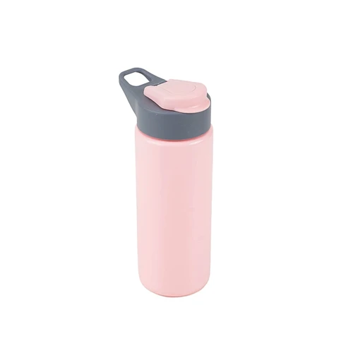 Botella reutilizable de PET con tapa de Polipropileno, cuenta con un agarre en la tapa para su transporte. Producto libre de BPA. No es apta para bebidas calientes, lavavajillas ni microondas. Capacidad: 600ml.